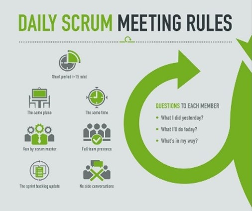Usually a Daily Team catch-up to discuss individual progress and Blockers.
